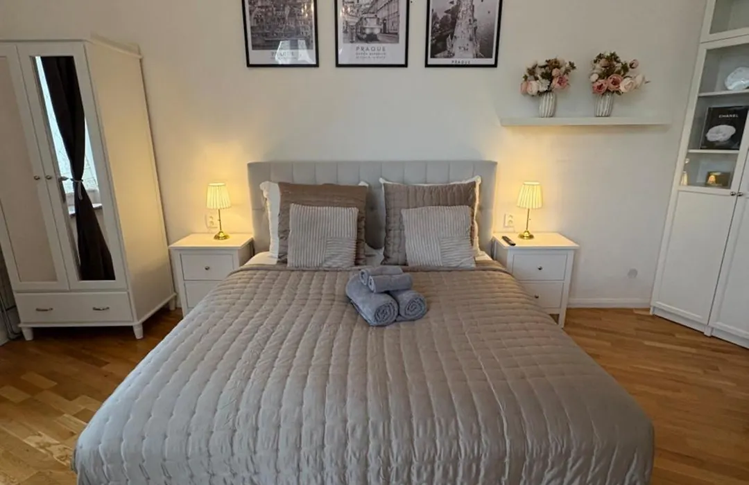 ベッドル-ム1室のCozy Flat In The Heart Of Pragueアパ-トメントは,プラハ本鉄道駅から0.7キロメ-トルの距離で,聖ヴァ-ツラフ記念碑から歩いてすぐの場所にあります.